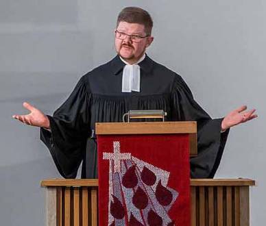 "Denn hinter uns liegen sechs intensive, dichte und bewegende Jahre mit euch. Jahre voller Begegnungen, Herausforderungen, gemeinsamer Schritte, mancher Umwege – und vieler Erfahrungen, die mich geprägt haben. Gemeinsam mit meiner Frau Lena und unseren Kindern Paula und Jakob bin ich hier angekommen, durfte mit euch leben, glauben, feiern und ringen – und habe dabei vieles empfangen. Wir haben uns mit euch auf den Weg gemacht – als Familie, als Glaubende, als Suchende. Dafür bin ich dankbar. Wenn ich auf diese Jahre zurückschaue, dann helfen mir drei Worte, das Erlebte geistlich zu fassen: Abbruch – Aufbruch – Neubeginn. Ein Abschnitt endet. Neues beginnt. Vertrautes wird losgelassen. Räume werden frei für Neues. Die Gemeinde geht weiter, mit anderen Stimmen, neuen Schwerpunkten – und hoffentlich mit Vertrauen in Gottes bleibende Gegenwart."