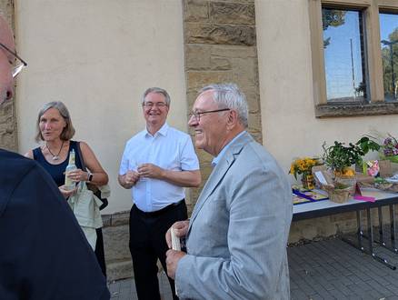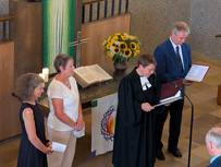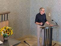 Für den Bezirkskirchenrat sprach Dr. Holger Lehmann, der betonte, dass die Arbeit für den Kirchenbezirk wohl einzigartig sei. Keiner könne es als Selbstverständlichkeit annehmen, dass sich eine Schuldekanin in so engagierter Weise um alle Belange des Bezirks, auch jenseits der schulischen, kümmere. Nach den Worten von Christine Wolf sei die Mitarbeit im Leitungsgremium des Kirchenbezirks keine Kür, sondern Pflichtprogramm. "Ich muss sagen", ergänzte Holger Lehmann, "ich habe selten jemanden erlebt, der ein Pflichtprogramm mit soviel Freude und Präsenz wahrgenommen hat."