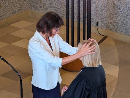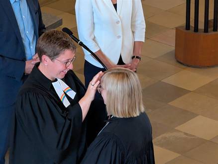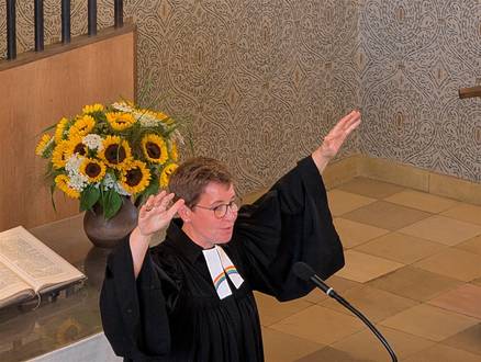 "Legt Eures dazu, bleibt menschenfreundlich und lebensfröhlich, und verändert, wo es notwendig ist." Man müsse mutig und auch mal gegen die Norm unterwegs sein, die Welt könne manchmal ver-rückt sein. Sie erzählte auch davon, wie sie Religionslehrerinnen und- lehrer immer mit dem folgenden Bibelwort für den Dienst eingesegnet habe. "Ich will dich segnen und du sollst ein Segen sein." Die Menschen seien durch Gottes Zusage richtig, so wie sie sind und können deshalb für andere zum Segen werden.