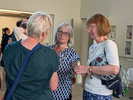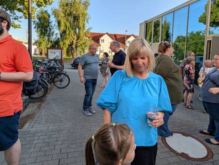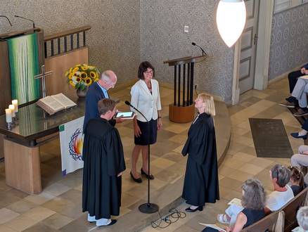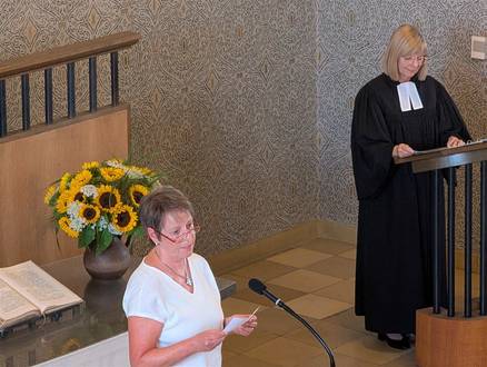 "Eine tolle Zeit geht zu Ende", erzählt Katharina Treptow-Garben bei den Grußworten nach dem Gebet. Die Handynummer von Christine Wolf sei in den letzten beiden Jahren unter den Favoriten in ihrem Handy gewesen. Sie könne sich keine bessere Begleitung wünschen. Sie habe soviel von ihr gelernt für ihren neuen Dienst als Dekanin.