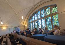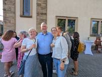 Die Schuldekaninnen und Schuldekane verabschiedeten in guter Tradition die Kollegin mit einem Lied aus ihrer Mitte, bevor alle auf dem Vorplatz der Kirche lange zusammen standen und erzählten Geschichten aus 20 Jahren mit Schuldekanin Christine Wolf in der Südlichen Kurpfalz.
