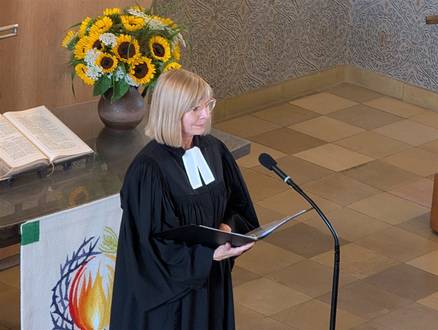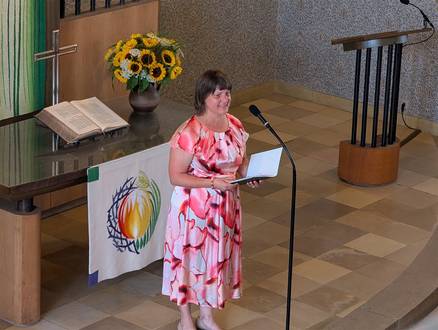 Es galt, Danke zu sagen in diesem Gottesdienst. Christine Wolf schilderte in ihrer Predigt selbst, wofür sie dankbar ist. Etwa wie sie beim Abiball im Schwetzinger Hebelgymnasium mit Blumen überrascht wurde und spontan eine "kleine Predigt" gehalten habe. "Die Zukunft wird geschehen". Christine Wolf ist überzeugt, dass wir aufgerufen sind, sie mutig mitzugestalten. Das möchte sie nicht nur ihren Schülerinnen und Schülern mit auf den Weg geben. Es sei immer Bewegung in der Sache Gottes und seiner Menschen.