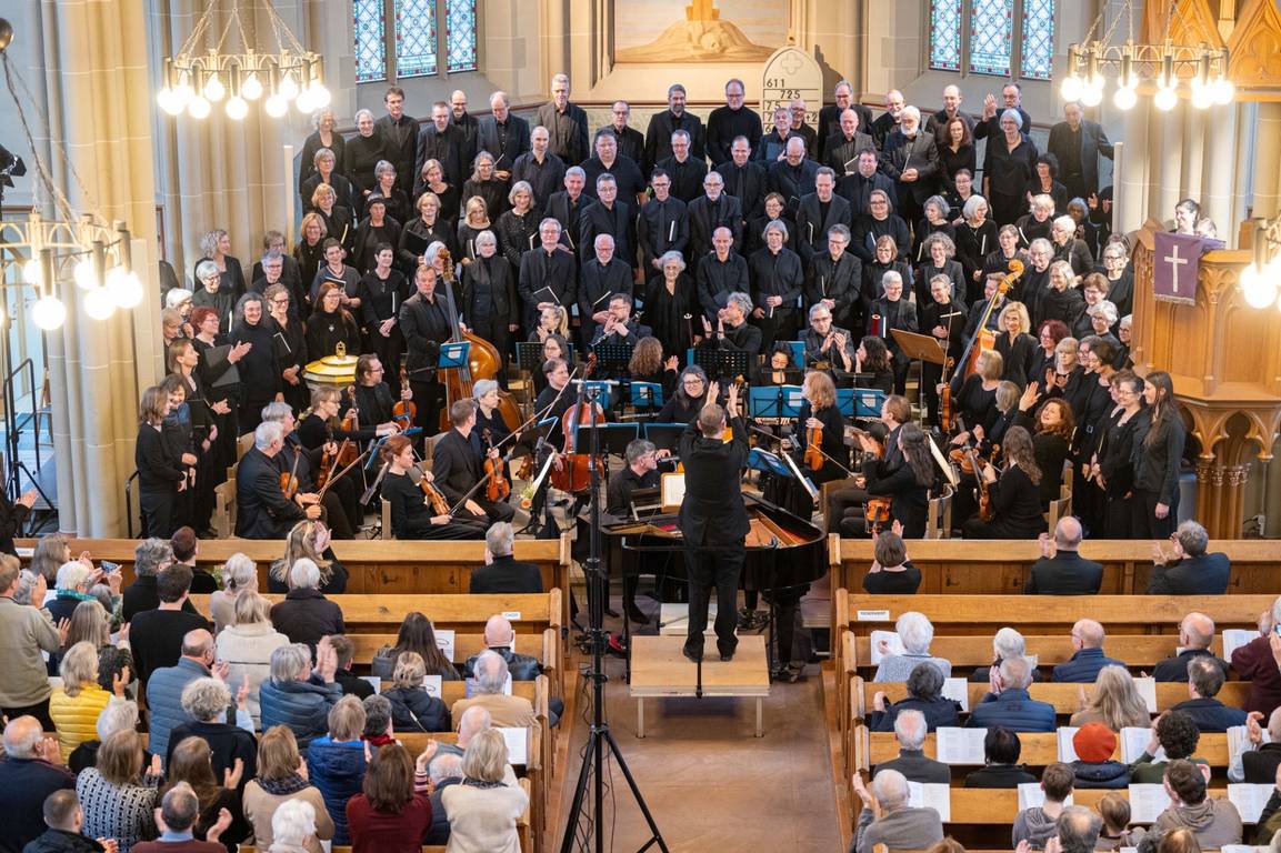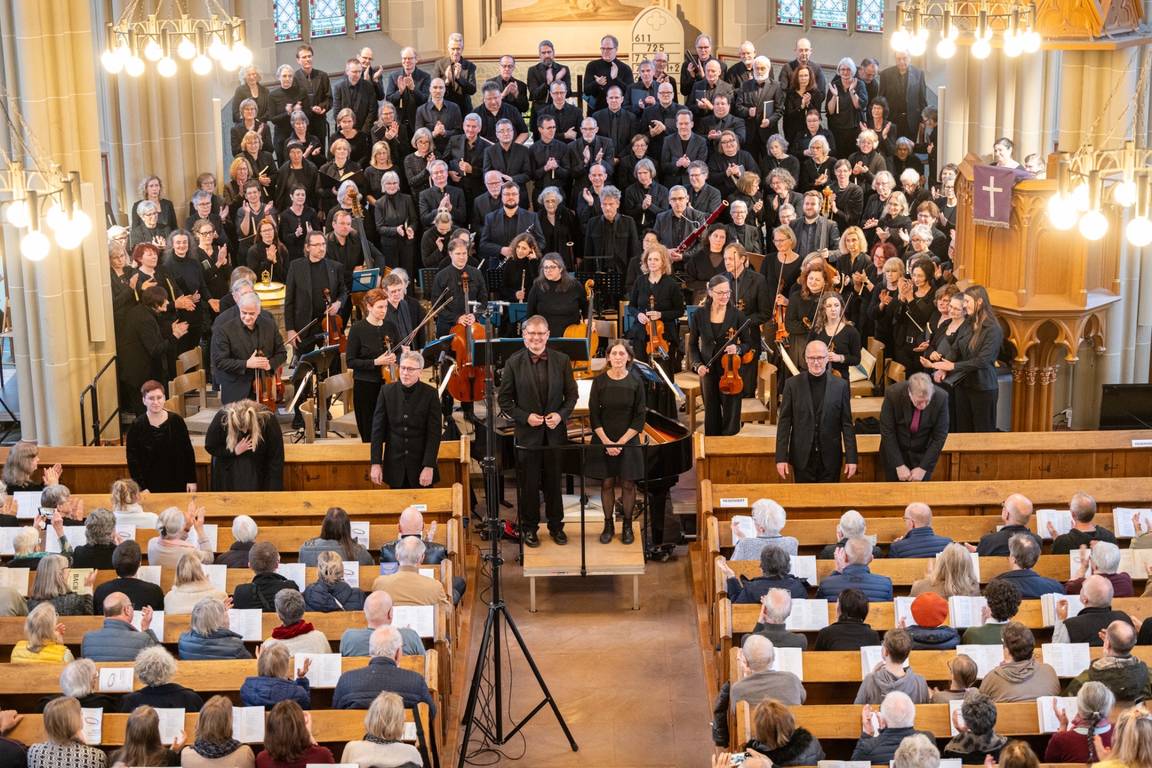 Der langanhaltende Applaus belohnte alle Beteiligten. Wie schön, dass wir eine solch großes Projekt gemeinsam mit Wiesloch durchführen konnten, professionell unterstützt vom Ensemble Operone und den tollen Solisten. Nach dem Konzert saßen die Sängerinnen und Sänger der beiden Kantoreien noch lange gemütlich beisammen und waren sich einig: Das soll sicher nicht die letzte Zusammenarbeit dieser Art gewesen sein.